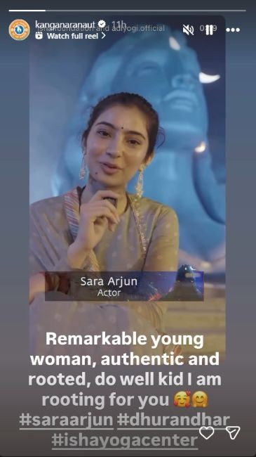 Actor Sara Arjun, who is gearing up for the release of her film Dhurandhar: The Revenge, received praise from Kangana Ranaut after the latter visited the Isha Foundation on Maha Shivratri.