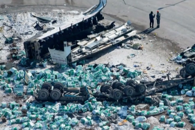 On April 6, 2018, 16 people were killed and 13 were injured when a northbound coach bus struck a westbound semi-trailer truck that blew through a stop sign near Armley, Saskatchewan, Canada. Photo: Screengrab