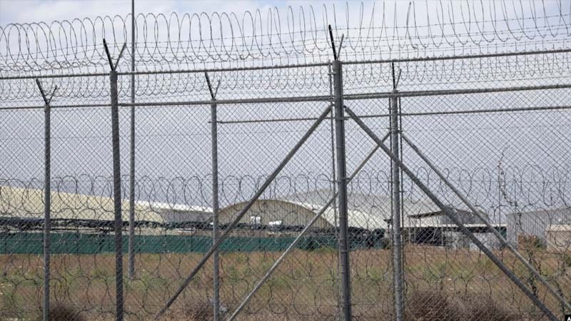 A hangar can be seen behind barbed wire fencing at Bagram Air Base after the U.S. military left the facility, in Parwan province, north of Kabul, Afghanistan, July 5, 2021.